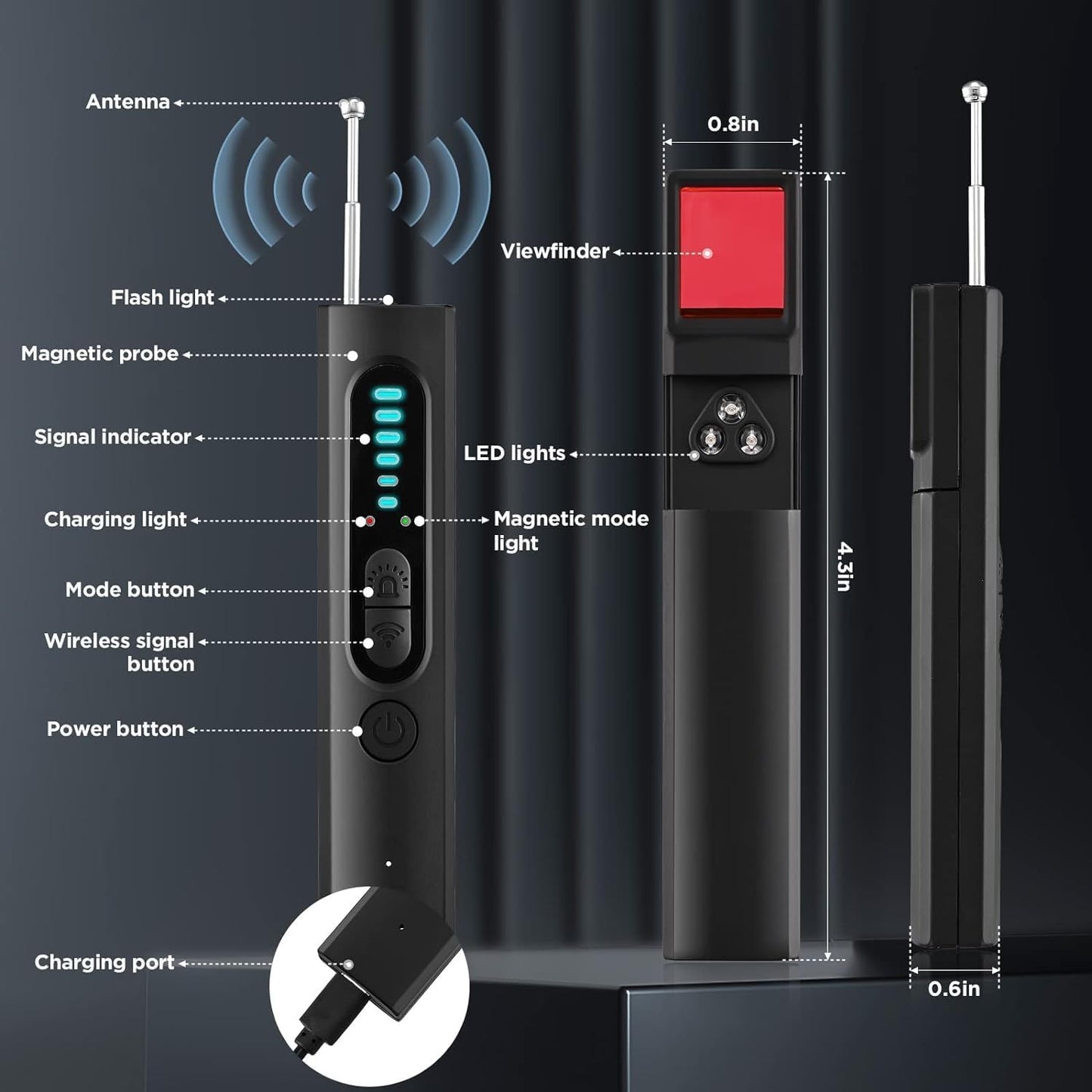 מצויד בטכנולוגיית RF ואינפרה אדום, המגלה הזו יכולה לאתר ביעילות כל מצלמה נסתרת או מכשיר האזנה, מבטיחה בטיחות מרבית.