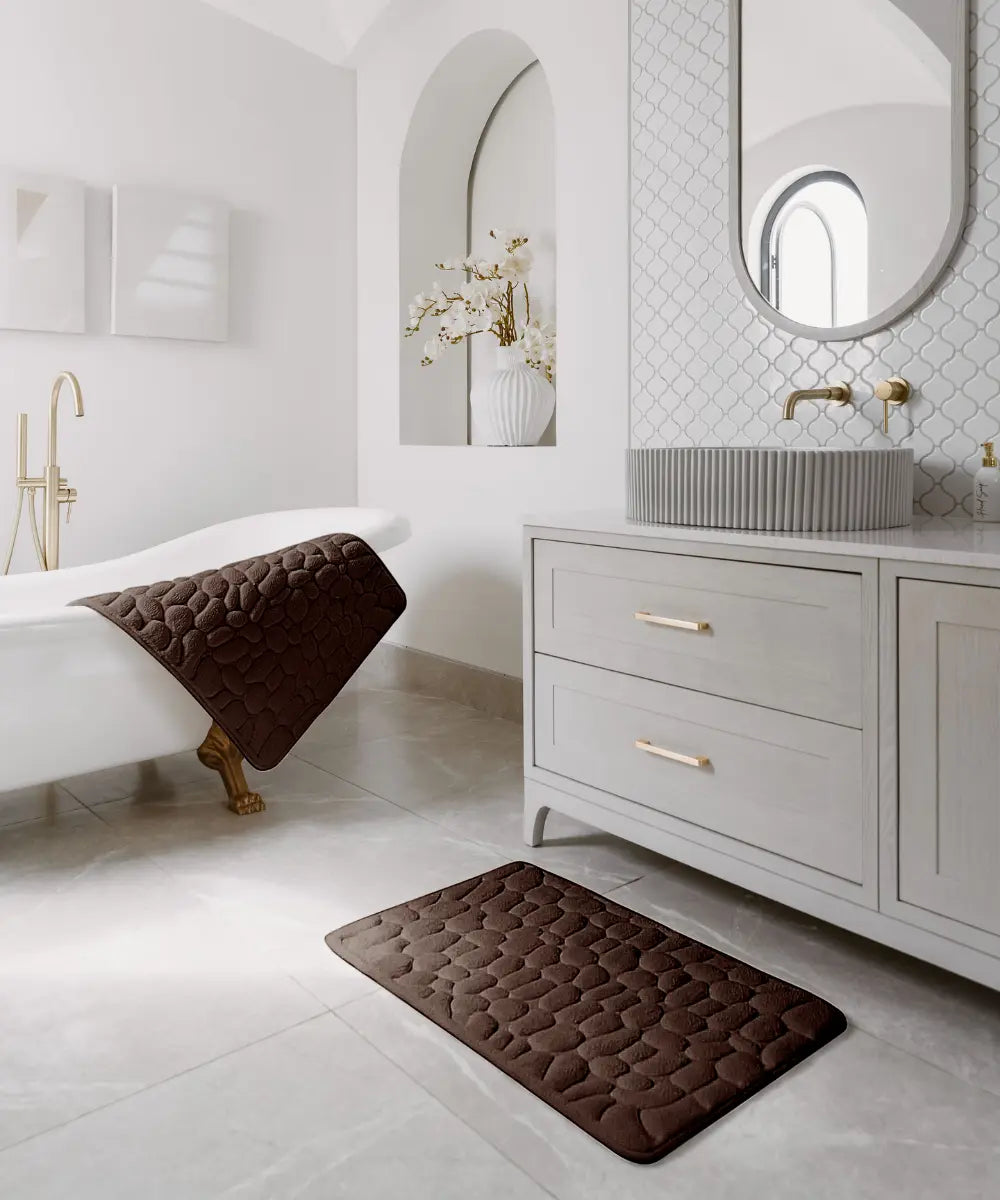 השטיח שלנו רך עם זיכרון הוא תענוג לרגליים. אולטרה-סופג, הוא מאפשר לחדר האמבטיה שלך להישאר תמיד נקי